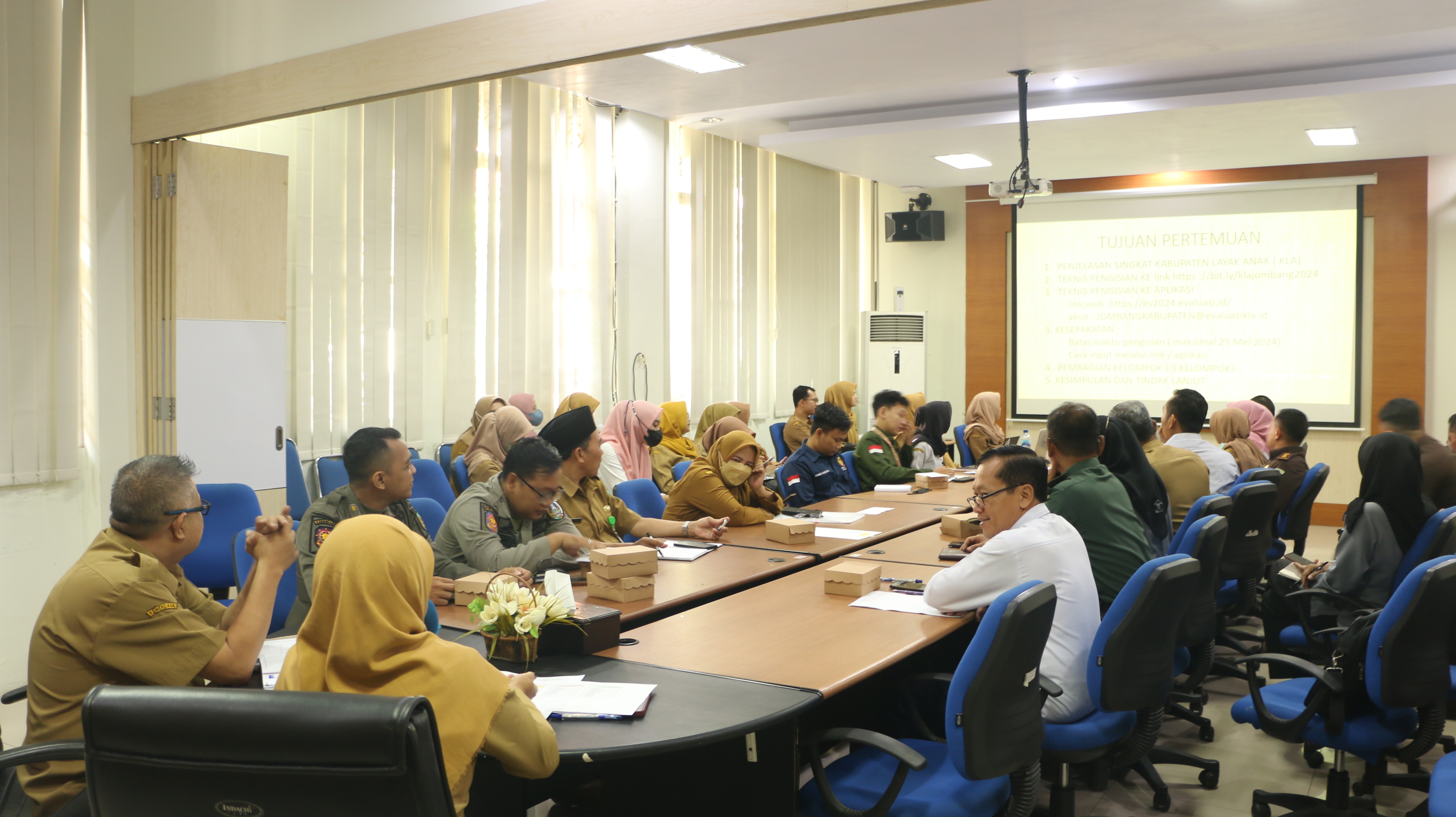 Dengan pembahasan persiapan penilaian KLA (Kabupaten Layak Anak) dimana tahun 2023 Kabupaten Jombang memperoleh predikat Nindya. Pertemuan kali ini membahas substansi yang harus diisi bersama dalam rangka mendukung penilaian Kabupaten Layak Anak Kabupaten Jombang tahun 2024.