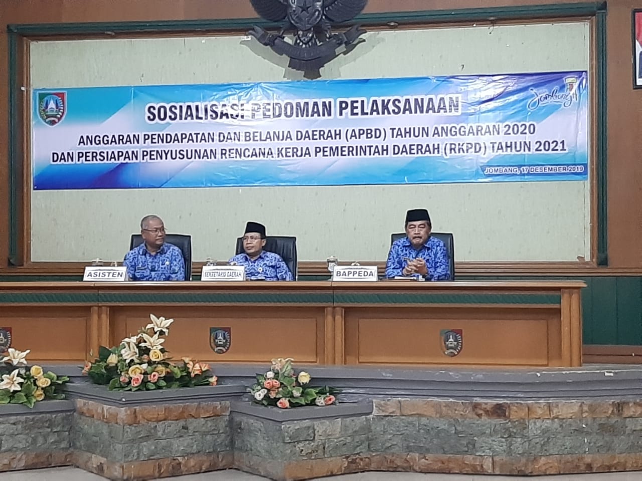 JOMBANGKAB-Bappeda, Badan Perencanaan Pembangunan Daerah Kabupaten Jombang menyelenggarakan Sosialisasi pedoman pelaksanaan Anggaran Pendapatan dan Belanja Daerah (APBD) 2020 dan persiapan penyusunan Rencana Kerja Pemerintah Daerah (RKPD) 2021 di Ruang Bung Tomo, pada Selasa 17/12/2019 dibuka oleh Sekretaris Daerah. Dalam Sambutannya disampaikan bahwa: dokumen RKPD 2021 merupakan dokumen perencanaan tahun ketiga dari masa kepemimpinan Bupati dan Wakil Bupati terpilih periode 2018-2023. RKPD 2021 berpedoman pada Peraturan Daerah Kabupaten Jombang Nomor 1 Tahun 2019 tentang Rencana Pembangunan Jangka Menengah Daerah Kabupaten Jombang Tahun 2018-2023, yang merupakan penjabaran dari Visi Pembangunan Jangka Menengah Daerah yakni “Bersama Mewujudkan Jombang yang Berkarakter dan Berdaya Saing”.
